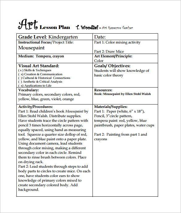 Art Teacher Lesson Plan Template