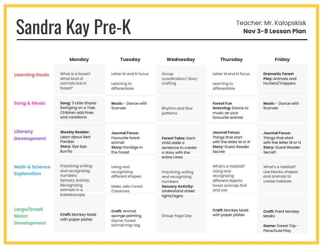 Pre K Weekly Lesson Plan Template