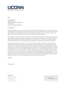 A letterhead is a preprinted heading at the top of a sheet of paper, typically including a company or organization’s name, address, and logo. The University of Connecticut’s Department of English provides a letterhead template for its faculty and staff to use when writing official correspondence.The template includes the department’s name, address, phone number, fax number, and email address. It also includes the university’s logo and branding. Using the template ensures that all official correspondence from the department has a consistent look and feel.