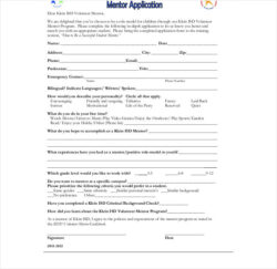 Providing a standardized format offers several advantages. It streamlines the application process, allowing administrators to evaluate candidates effectively. A well-designed structure ensures applicants highlight relevant information, increasing their chances of successful placement within the program. Furthermore, it promotes equity by providing all applicants with the same opportunity to present their case for mentorship.