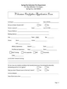 Utilizing a structured format streamlines the application procedure for both candidates and fire departments. Candidates benefit from a clear understanding of expectations, while departments can efficiently manage a potentially high volume of applications. This structure also promotes fairness and equal opportunity by ensuring all applicants provide the same essential information. Standardized forms can also reduce processing time and improve overall hiring efficiency.