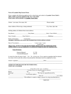 Utilizing a pre-designed structure streamlines the licensing procedure, making it easier for pet owners to fulfill legal obligations and for municipalities to manage animal populations. This can lead to improved public safety by enabling efficient identification and tracking of animals, assisting in reuniting lost pets with their owners, and supporting responsible pet ownership practices. Additionally, the fees collected through licensing often contribute to funding animal control and shelter services within the community.