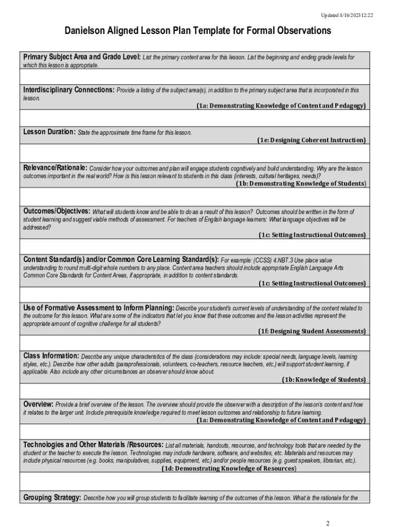 Danielson Lesson Plan Template