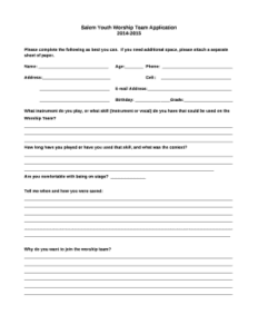 Utilizing such a form streamlines the selection process, enabling leadership to efficiently compare candidates and make informed decisions. It promotes transparency and objectivity, reducing potential bias. Furthermore, it assists in assembling a cohesive team of individuals with complementary talents and shared values, contributing to a stronger and more effective musical ministry.