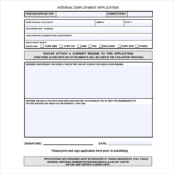 Standardized forms offer several advantages. They clarify expectations for applicants, ensuring all essential information is presented. This simplifies the review process for hiring managers, allowing for efficient talent assessment and informed decision-making. Furthermore, structured applications promote fairness and equal opportunity by providing a level playing field for all internal candidates. They also enhance the professionalism of the internal mobility process and contribute to a positive candidate experience.
