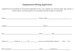 Utilizing a standardized form streamlines hiring processes, reduces administrative overhead, and ensures legal compliance by capturing essential information related to background checks and safety regulations. This efficiency benefits both employers and applicants, enabling faster hiring decisions and a smoother onboarding experience. Furthermore, these forms often incorporate legal disclaimers and authorizations, safeguarding both parties involved.